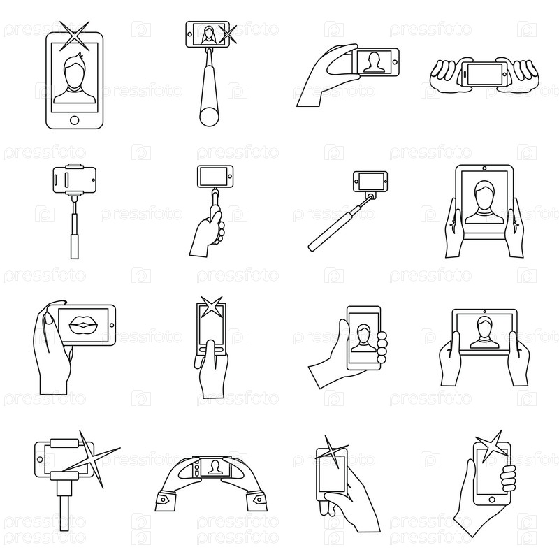 Набор икон для селфи, стиль контуры