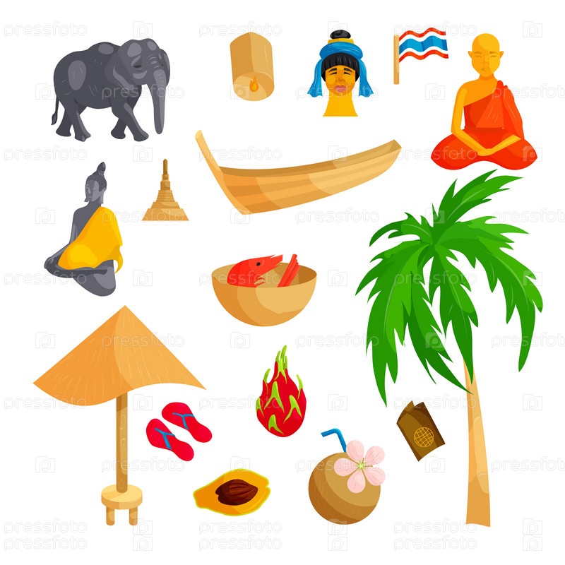набор икон, мультфильм в стиле Таиланд