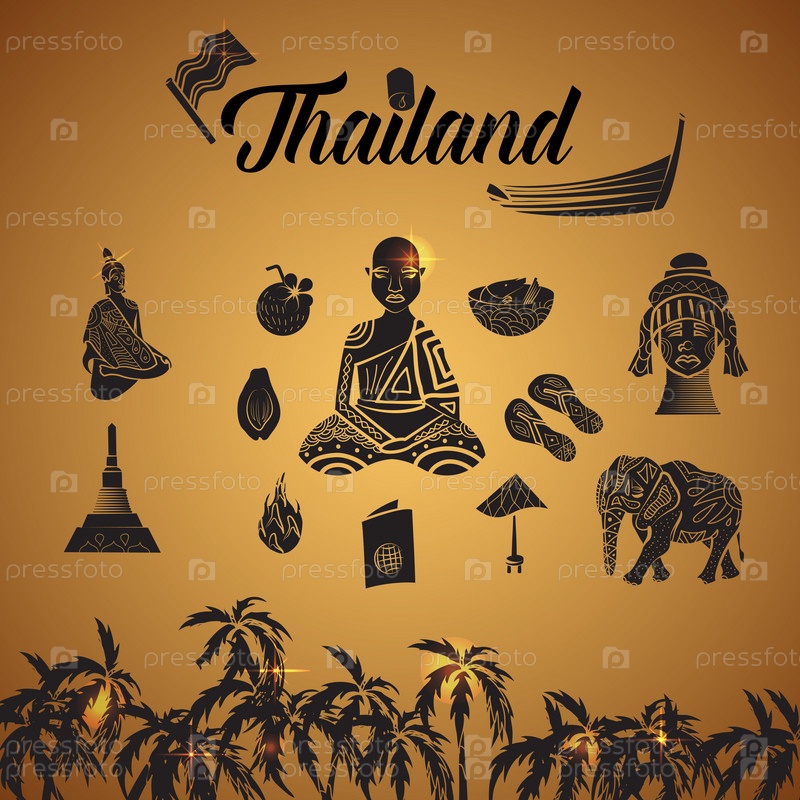 Набор икон, простой стиль Таиланд