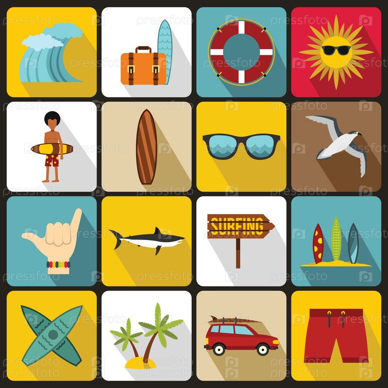 Набор икон серфинга, плоский стиль