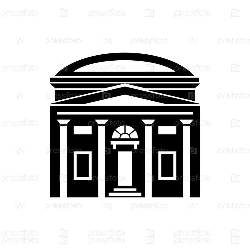 Здание с круглой иконой крыши в простом стиле на белом фоне