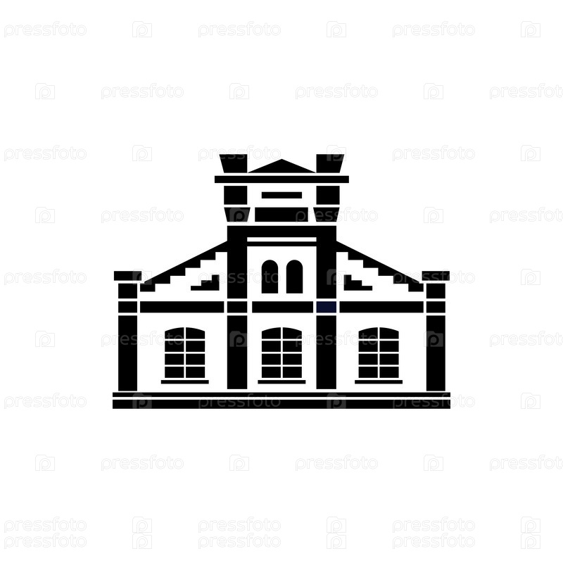 Икона общественного здания в простом стиле на белом фоне
