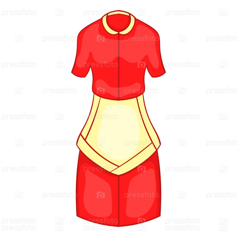 Красное платье домохозяйки с белым фартуком икона в стиле мультфильма на белом фоне
