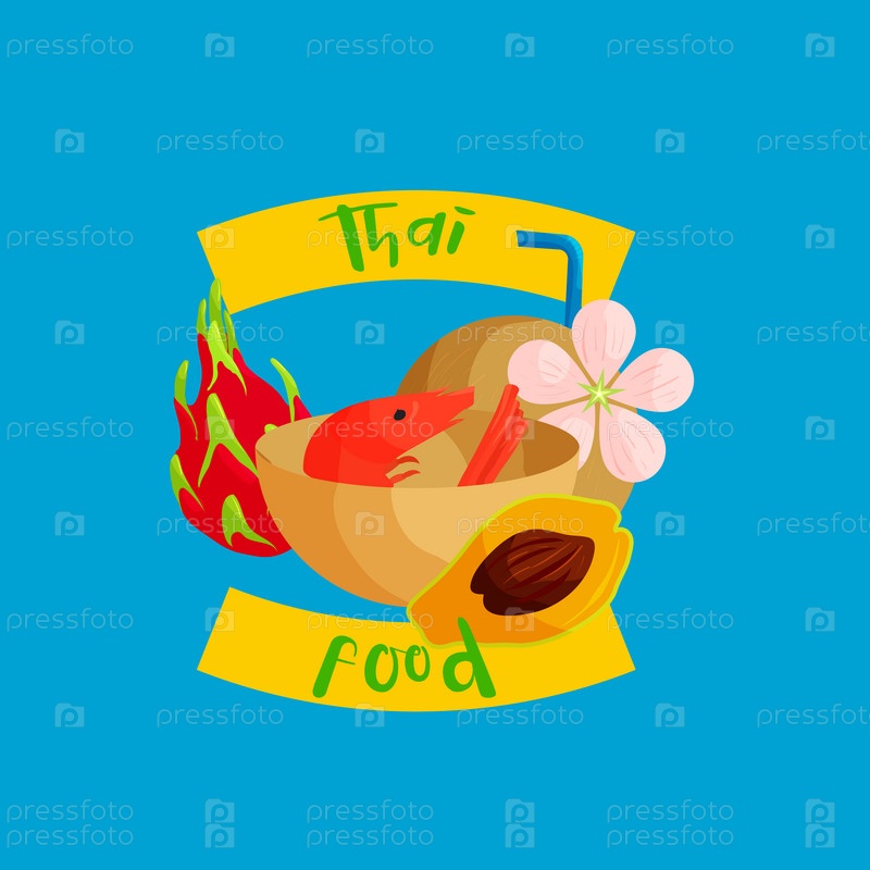 Икона тайской кухни в плоском стиле на небесно-синем фоне