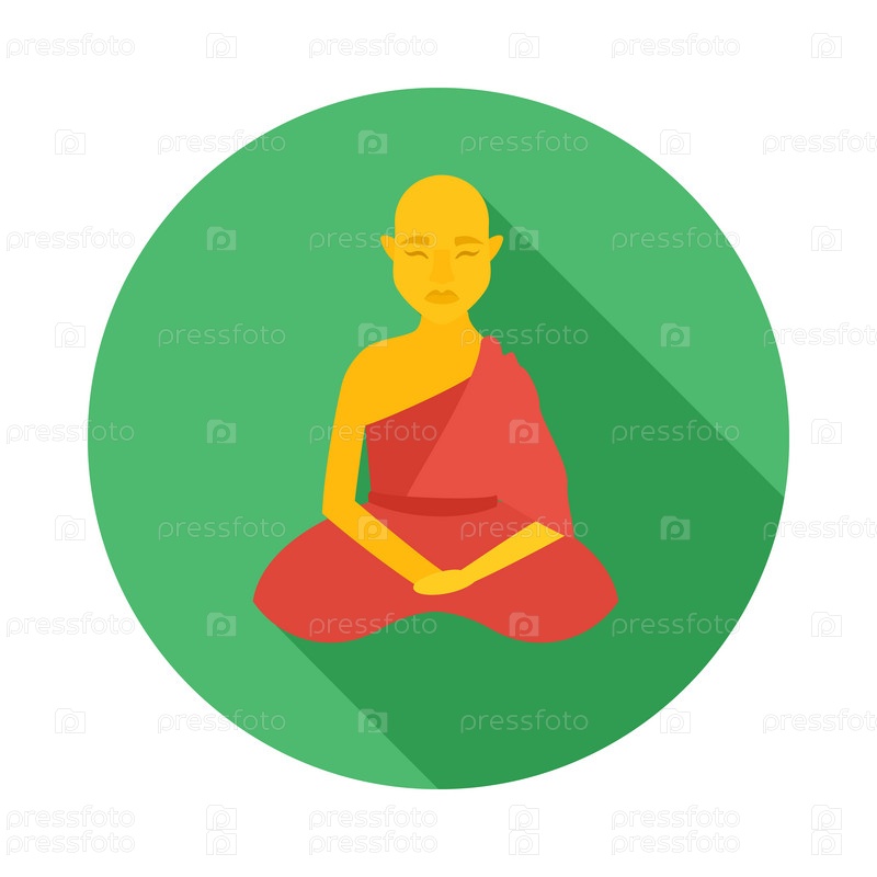 Икона сидящего буддийского монаха в плоском стиле на белом фоне
