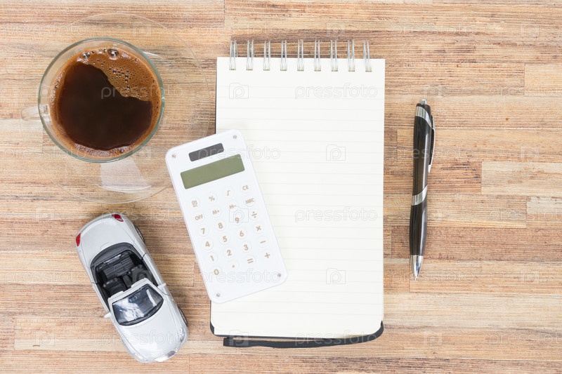 Игрушечный автомобиль с ноутбуком, калькулятором и кофе