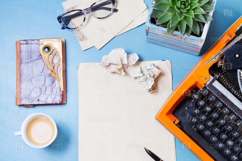 Рабочее место с винтажной оранжевой пишущей машиной