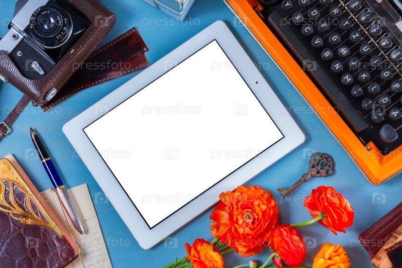 Рабочее место с винтажной оранжевой пишущей машиной