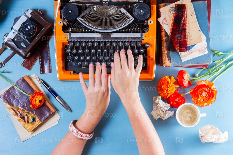 Рабочее место с винтажной оранжевой пишущей машиной
