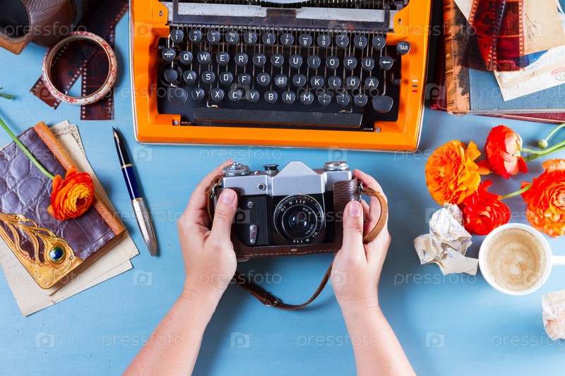Рабочее место с винтажной оранжевой пишущей машиной