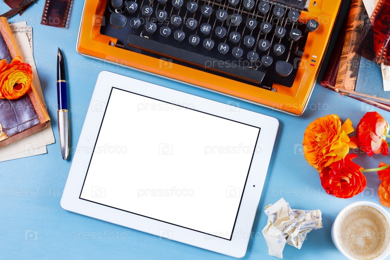 Рабочее место с винтажной оранжевой пишущей машиной