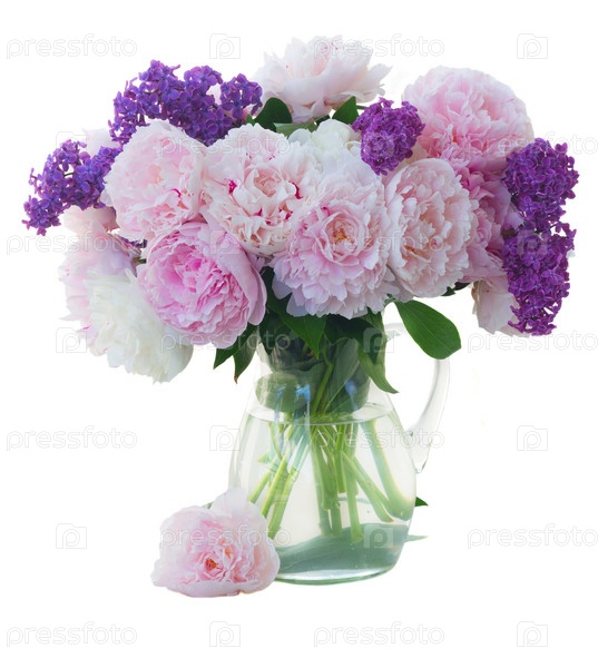 Свежие цветы пионки и лилии
