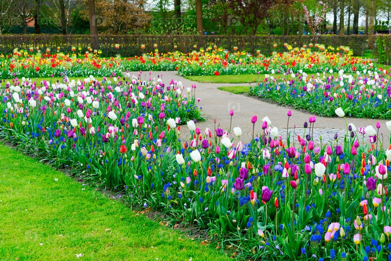 Ряд цветов тюльпанов