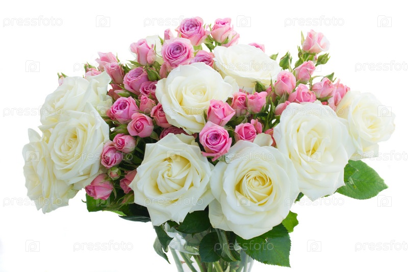Розовые и белые цветущие розы