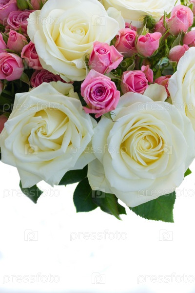 Розовые и белые цветущие розы