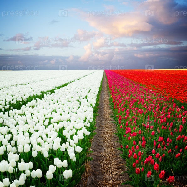 Голландские красные поля тюльпанов