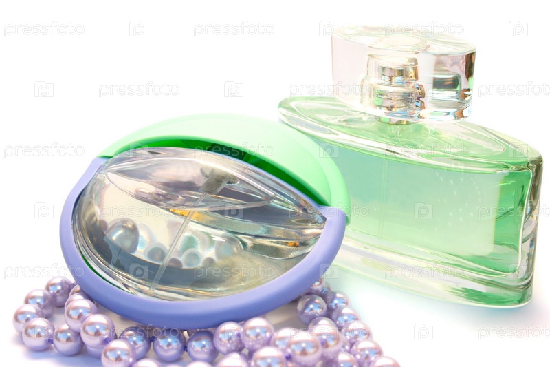 Флаконы духов и ожерелье