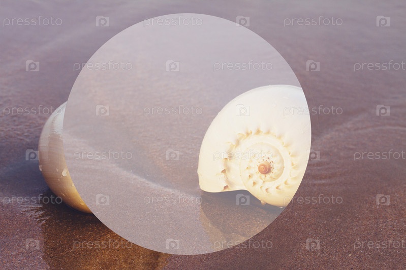 Ракушка на морском берегу на закате