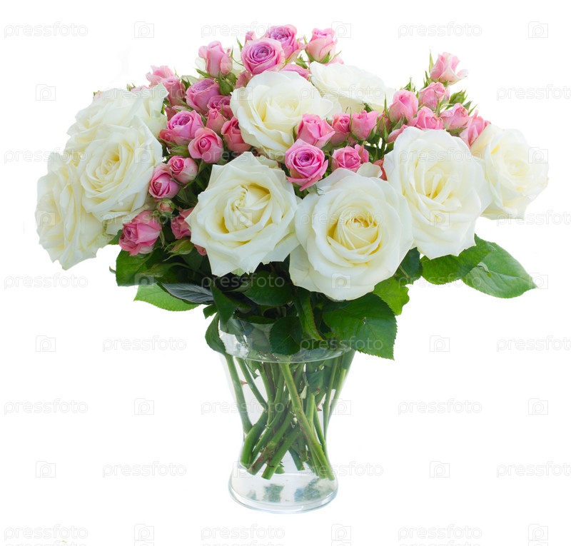 Розовые и белые цветущие розы