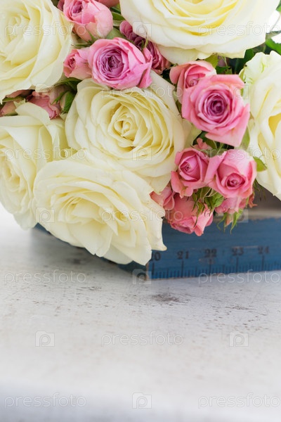 Розовые и белые цветущие розы