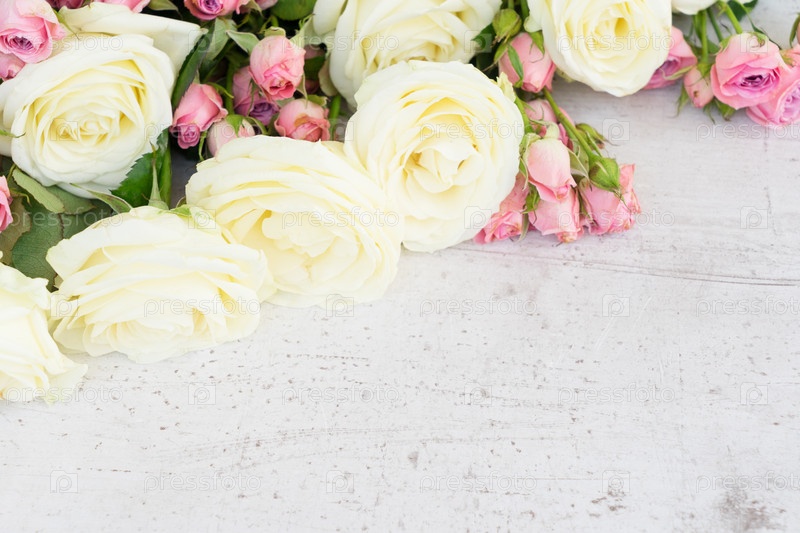 Розовые и белые цветущие розы
