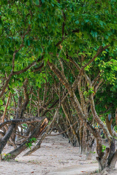Аллея тропических деревьев на песчаном пляже в Таиланде