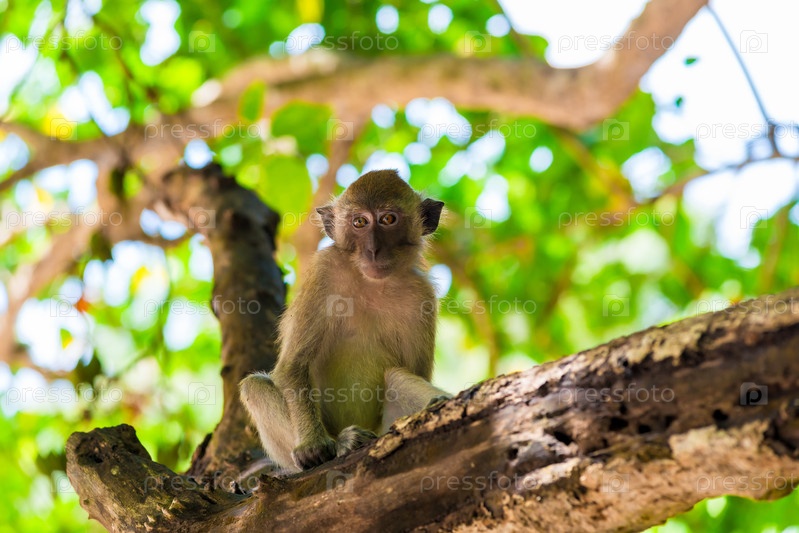 Обезьяна сидит на дереве и смотрит в рамку