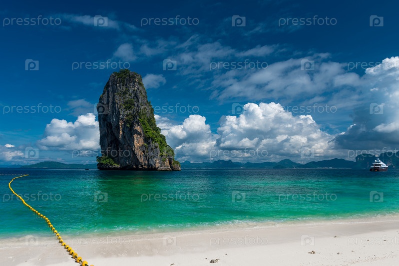 Очень красивый вид с острова Пода до курорта Краби на горизонте, Таиланд
