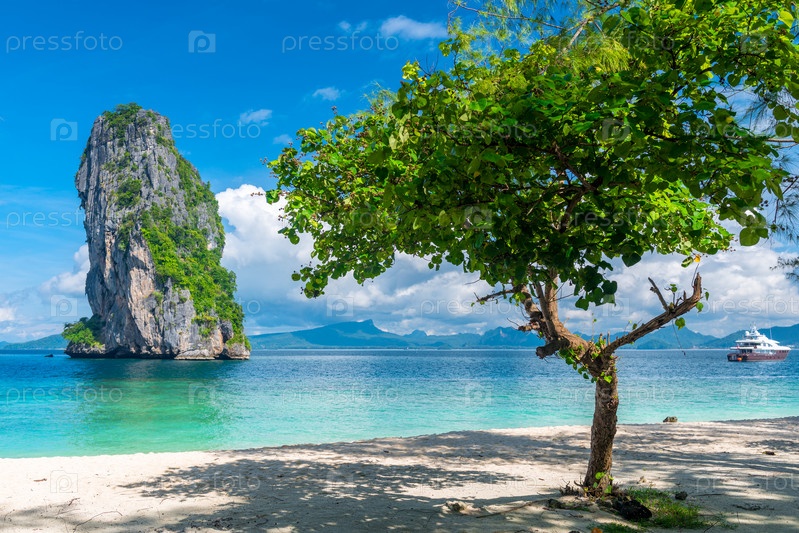 Вид с острова Пода на красивой скале и дереве в солнечный день, Таиланд
