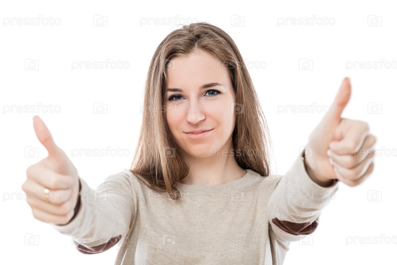 Счастливая удовлетворенная девушка, показывающая жест руки хорошо изолирована