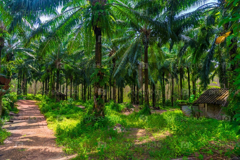 Плодоносящие пальмы в солнечный день на кокосовой ферме в Таиланде