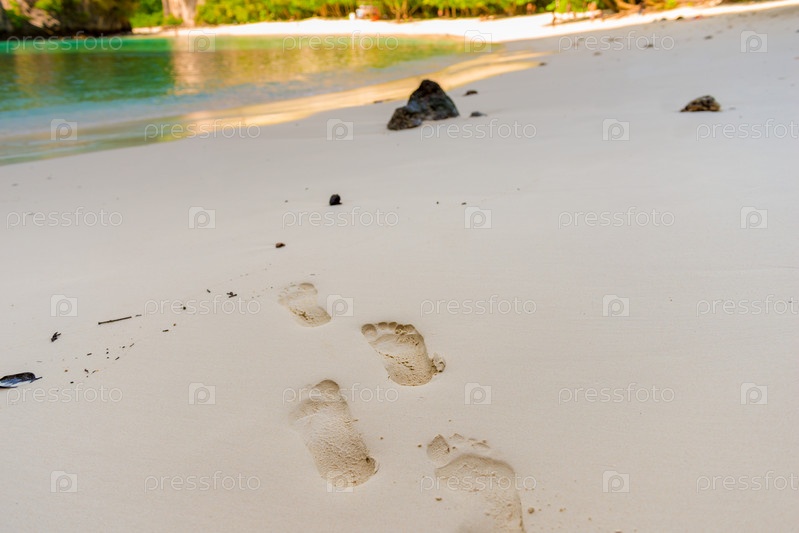 Следы на мокром песчаном пляже в тропическом ближайшем фото