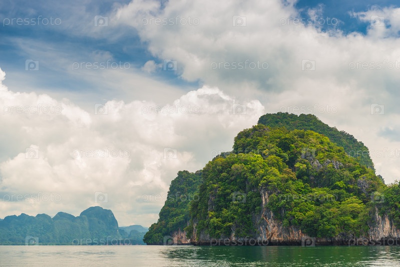 Живописный пейзаж - красивые зеленые горы на горизонте в Андаманском море в Таиланде, провинция Краби