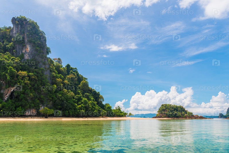 Вид на необитаемый остров с песчаным пляжем в курорте Таиланд