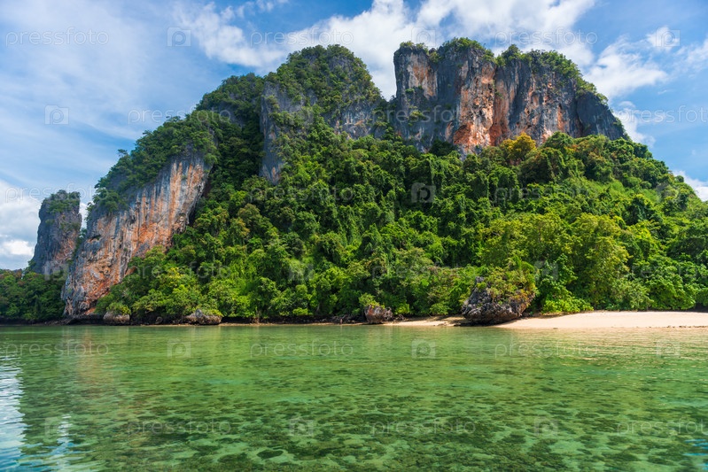 Вид на необитаемый тропический остров с песчаным пляжем в Таиланде