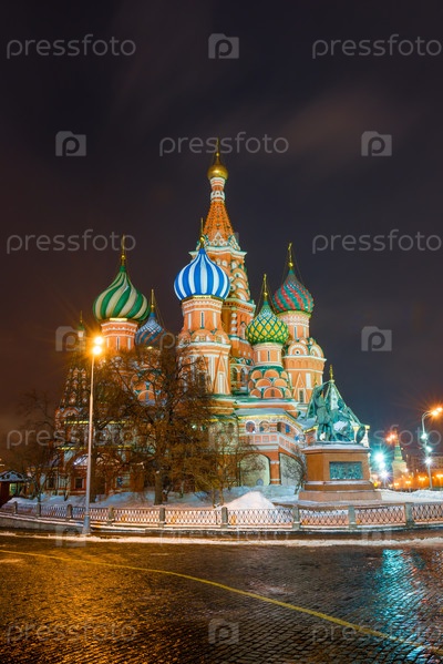 Ночной вид на красивый собор Святого Василия на Красной площади в Москве, Россия