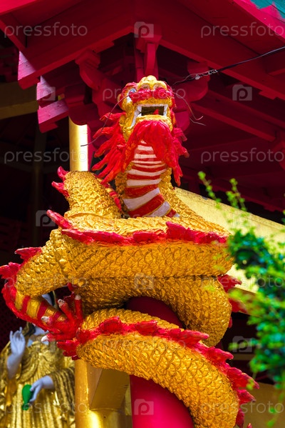 Красивый ярко-желтый китайский дракон - традиционный символ страны
