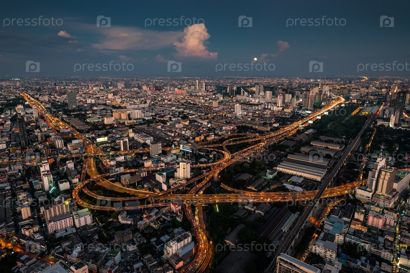 Основной дорожный перекресток в столице Таиланда - центре Бангкока с высоты