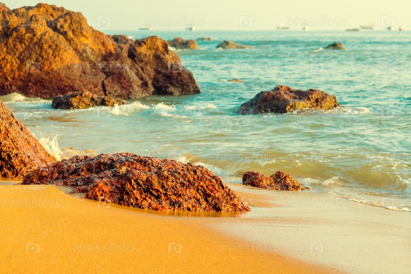 Красивые большие камни, лежащие на берегу океана