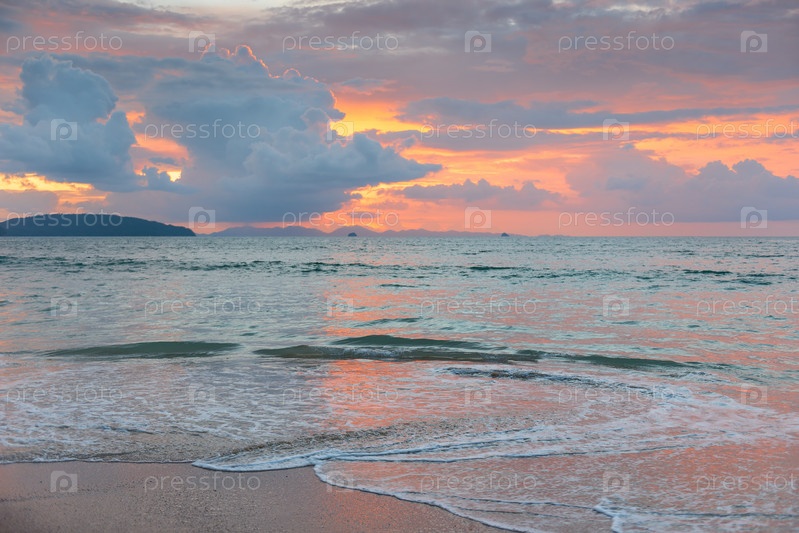 Розовое небо с красивыми облаками во время заката над морем в Таиланде