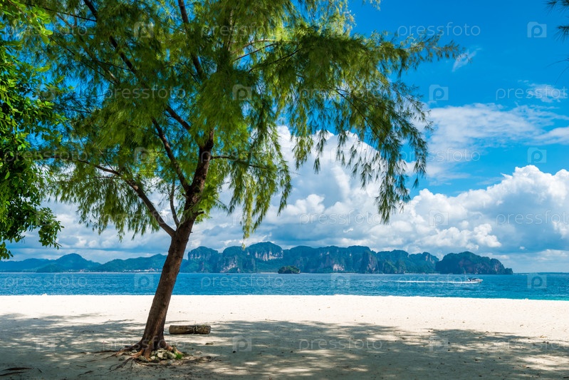 Фотопросмотр Краби в тени дерева на пляже, Таиланд
