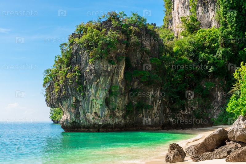 Прекрасный остров Хон, Таиланд - скальный ближайший план и Андаманское море