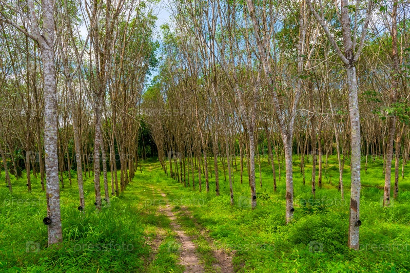 Аллея резиновых деревьев на плантации в Краби, Таиланд