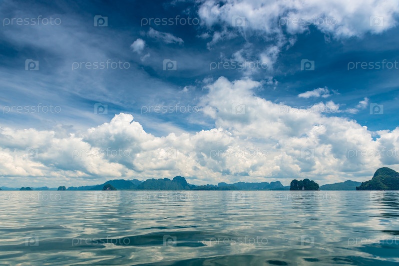 Почтовый пейзаж с видом на прекрасный Таиланд, море и горы в хороший день