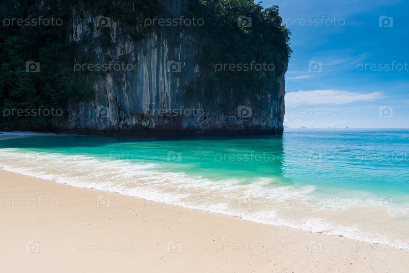 Вид на скалу и бирюзовую воду Андаманского моря, остров Хонг, Таиланд
