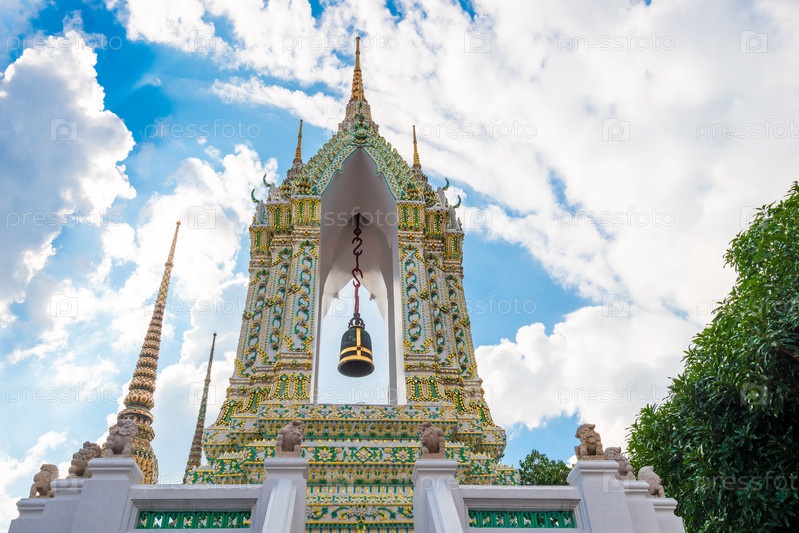 Красивая покрашенная колокольня храма Таиланда, Бангкок
