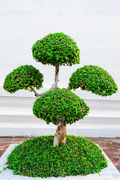 Маленькое декоративное обрезанное дерево в горшке на улице Таиланда