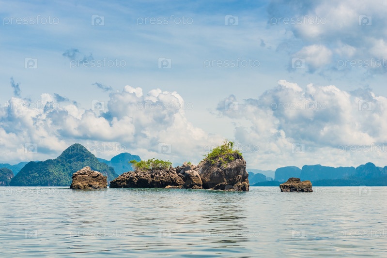 Красивые облака над морем с скалами в Таиланде, морской пейзаж