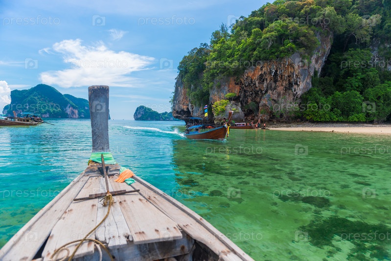 Такси для туристов на воде - вид традиционных деревянных тайских лодок с длинным хвостом в красивом месте
