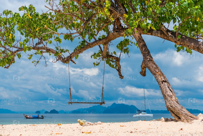 Песчаный пляж, красивый пейзаж с видом на море, Краби Таиланд